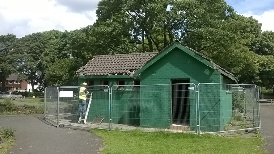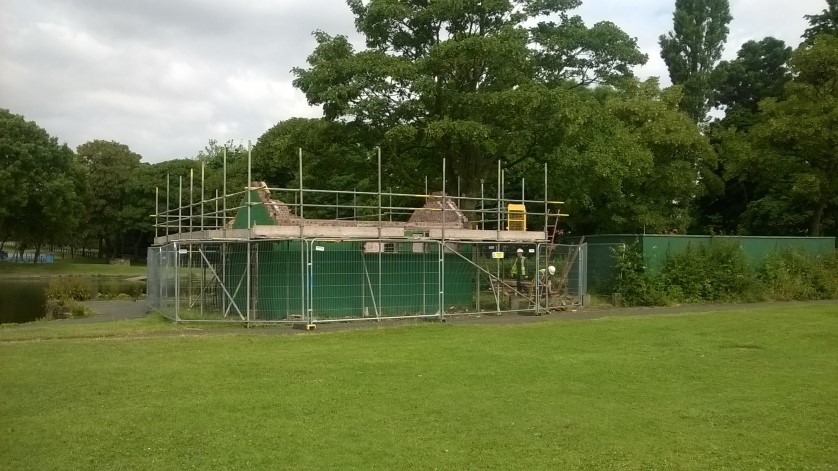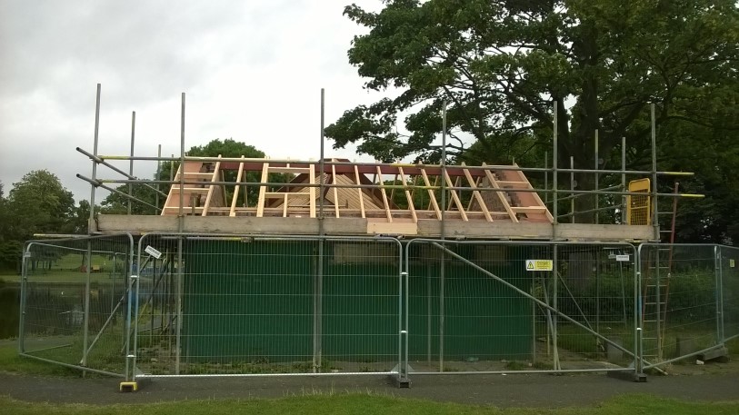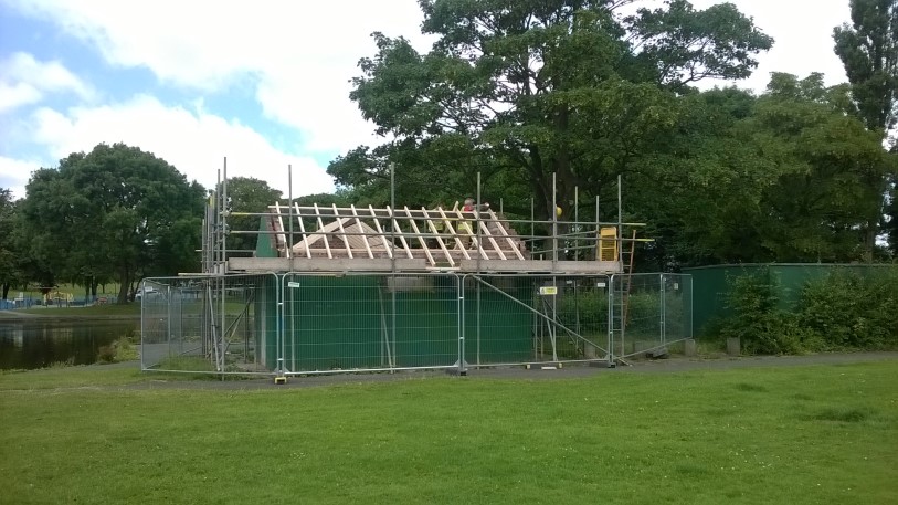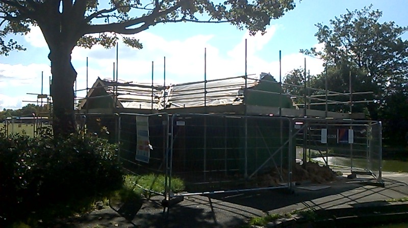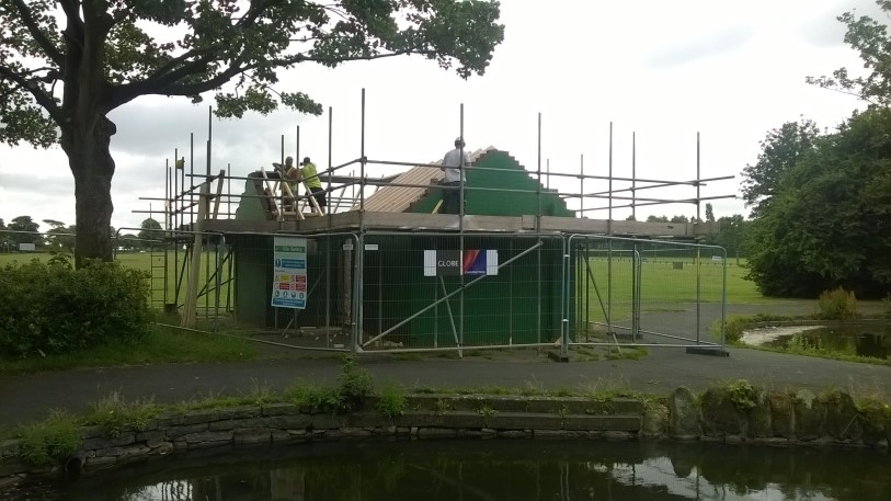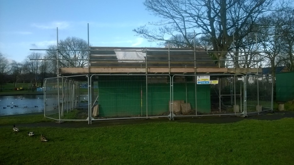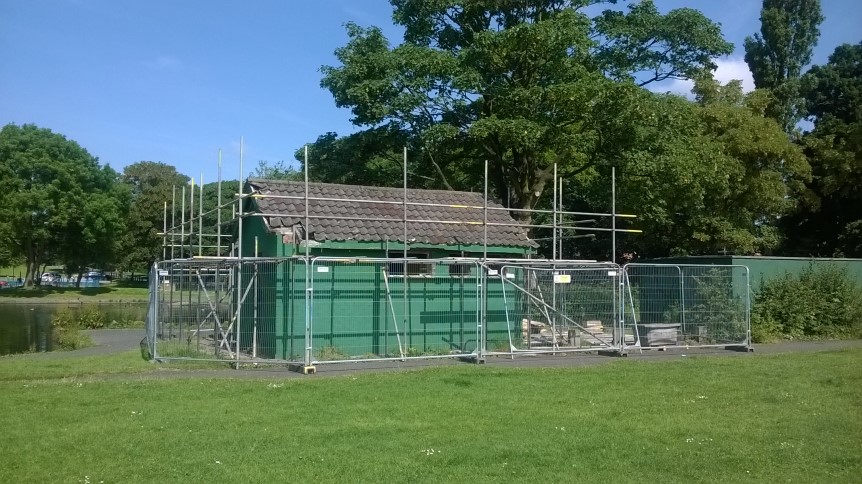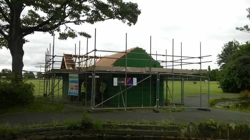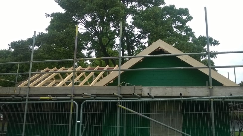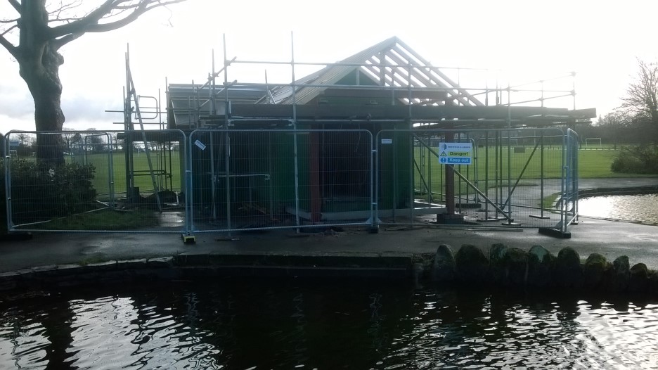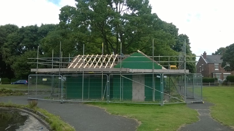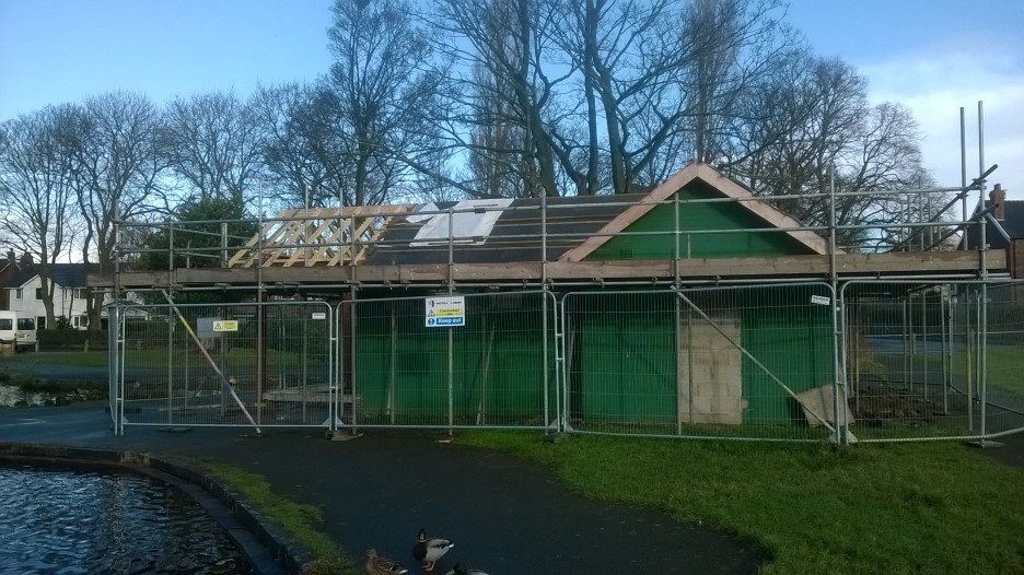 Regrettably for the time being due to unforeseen issues, all building work on the Pavilion and main park building have been suspended until new contractors can be found. The pictures below showing the temporary weather proofing.