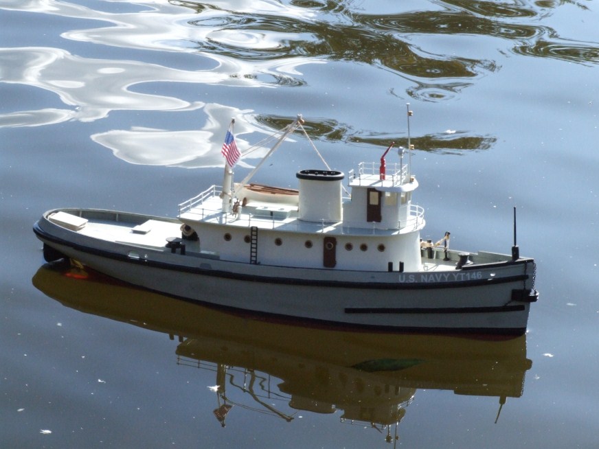 Some years ago our late Commodore, Derek Lowe, was clearing out some of his unwanted items, one of which was an un-built Billings kit of the American Yard Tug the USS Hoga which saw some heavy active duty at Pearl Harbour during and after the 'infamous' attack. The kit was given to David who decided to build it. Although we have no picture of the build you can see it here on the lake. Also with some actual pictures of the Hoga in action at Pearl Harbour.